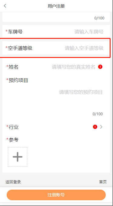 自定义字段显示名称:常应用于用户填写编号、会员卡号、身份证、车牌号等场景。