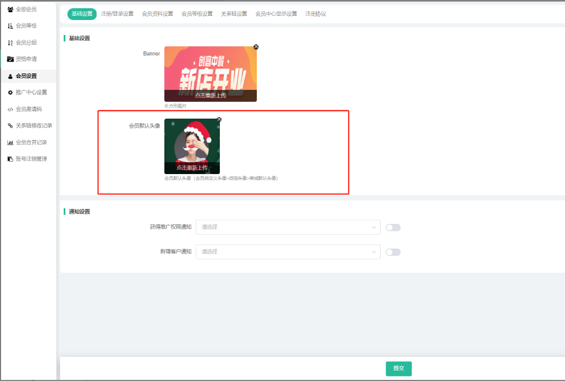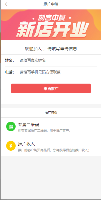 (前端推广申请的顶部图片可进行更换,在会员--会员设置--基础设置Banner进行更改)