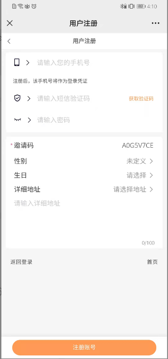(2)关闭,则注册直接获取手机验证码注册,不需要填写密码,效果如下