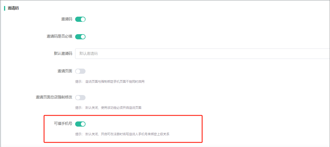 会员资料设置增加前端修改手机号按钮是否显示开关