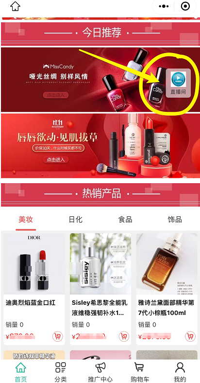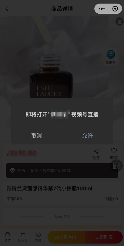 支持小程序直接跳转视频号直播间。在商城首页,商品详情页显示视频号直播间浮动窗口,点击可跳转至视频号直播间