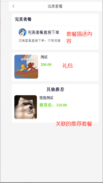 ⑧其他搭配套餐显示设置:前端套餐专题页可显示其他搭配套餐