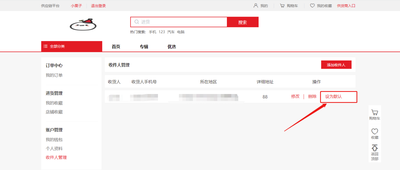 设置地址为默认地址,默认地址只会有一个