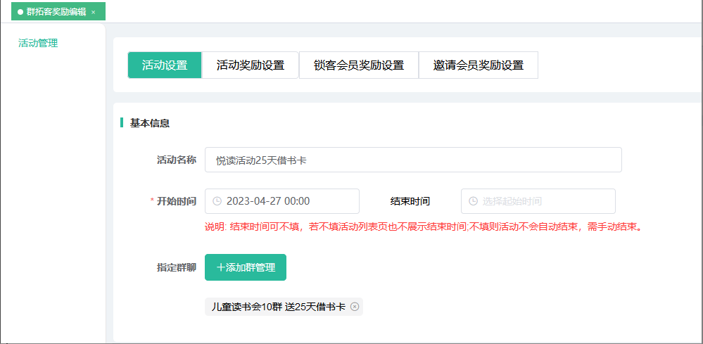 2、登录企业管理平台--应用中心--群拓客奖励—活动管理