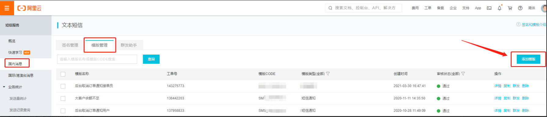 模板内容示例:您有订单待查看,点击链接查看https://你的码科系统后端域名/${url},码科跑腿,专人直送。