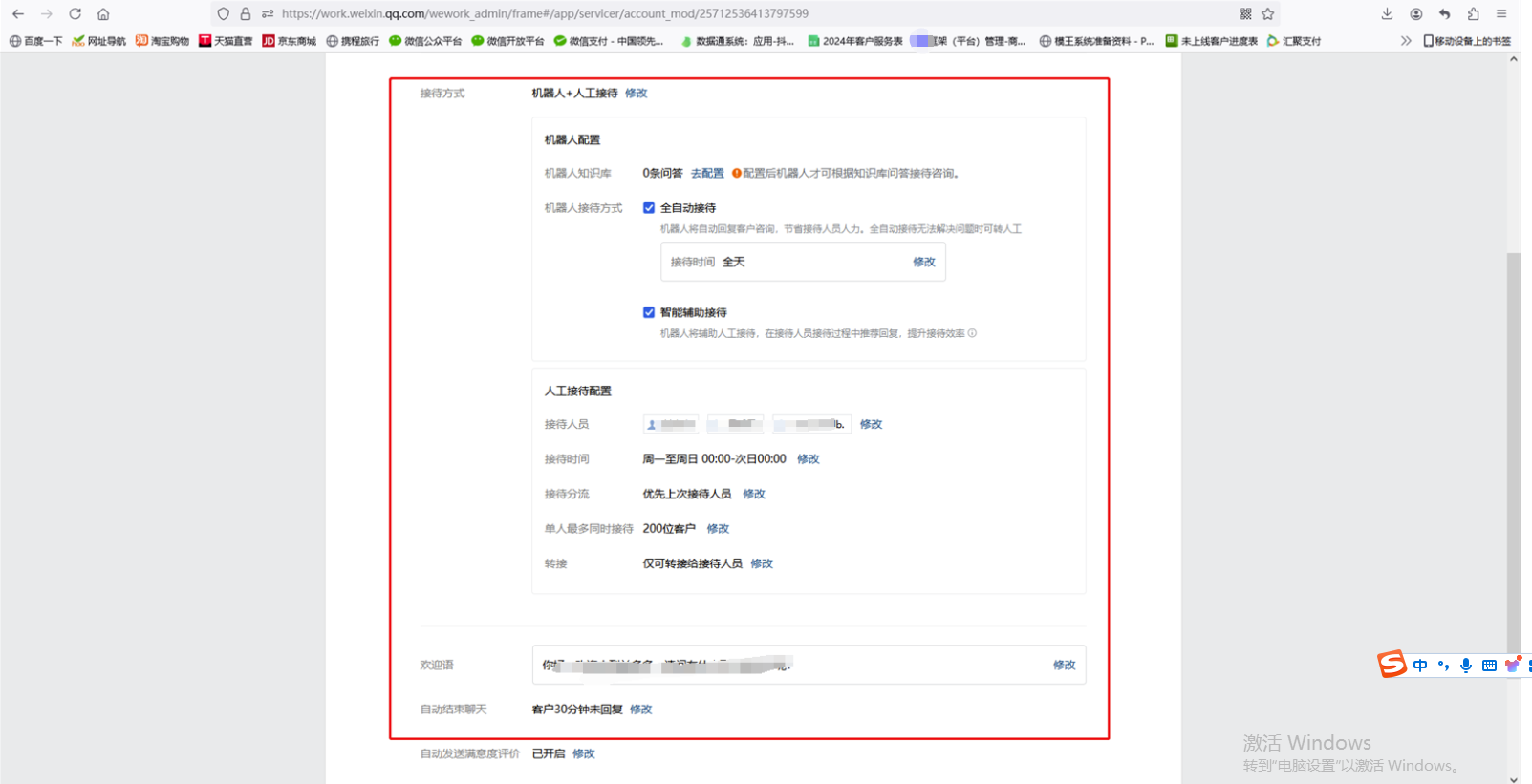 授权后点击客服处,设置客服在线时间和客服人员--设置多个客服人员,客户咨询会随机分配
