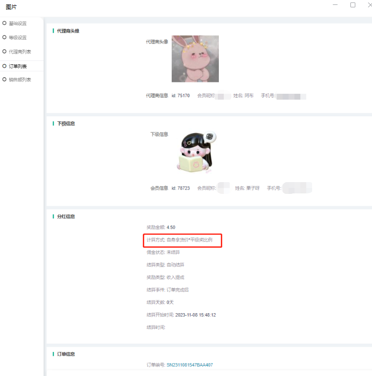 (3)招商员分红计算公式:所招代理商拿货价x奖励比例