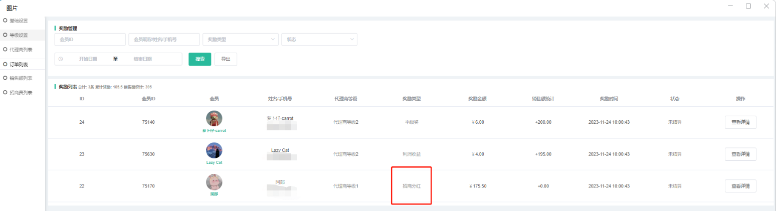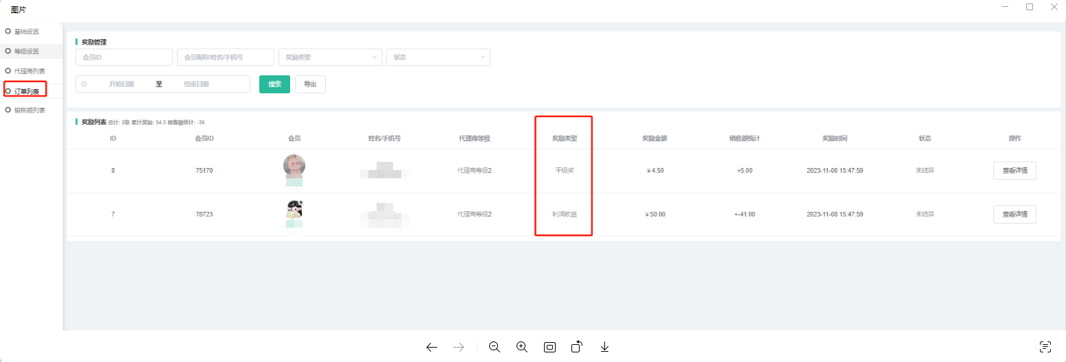 二、订单列表--奖励管理——奖励管理列表增加招商分红显示