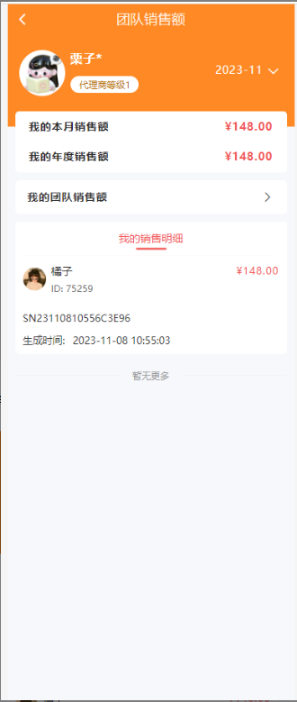 4、点击我的团队销售额查看团队下级中,我有获得销售额的订单总额