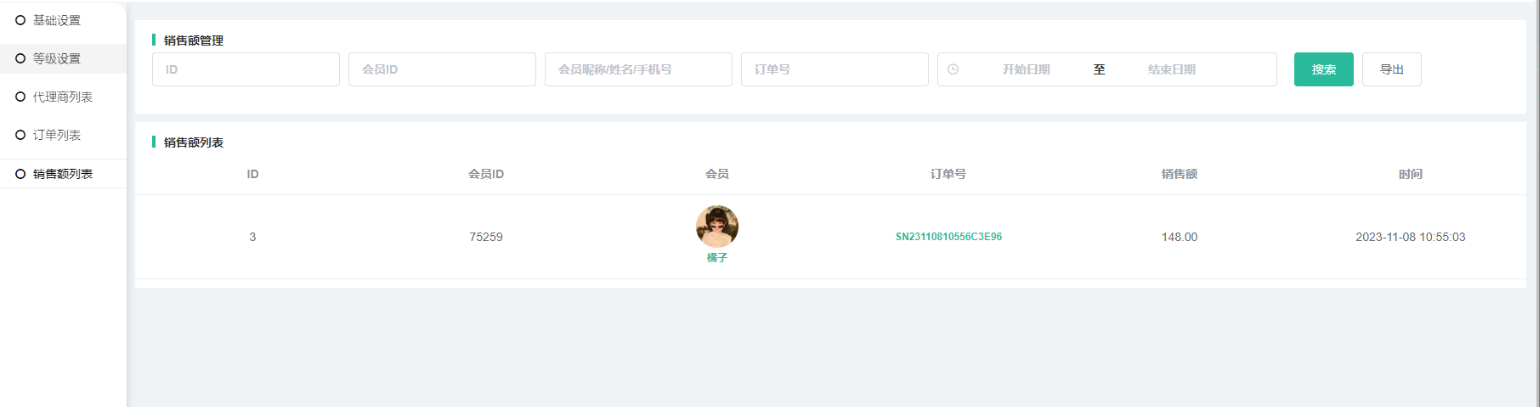 1) 统计每个代理商每个月的销售额记录,可以根据时间段搜索查询出代理商的月度销售额,年度销售额。计销售额跟着结算事件:订单支付后/订单完成后走。选择订单支付后,支付后统计销售额。选择订单完成后。完成后才统计销售额
