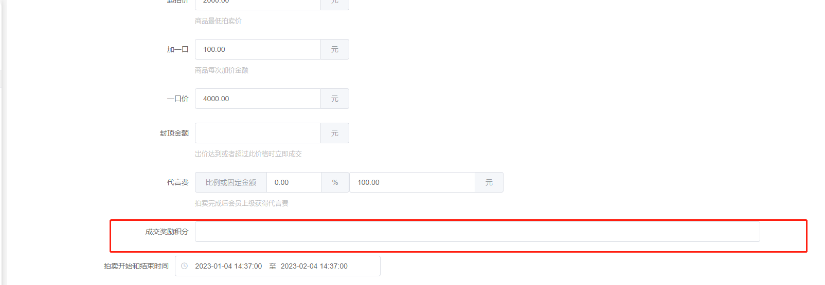 9、成交奖励积分,竞拍成功的会员获得的积分奖励