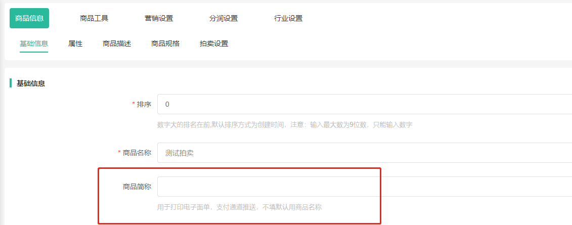 3、拍品列表--编辑--商品信息--增加商品简称设置