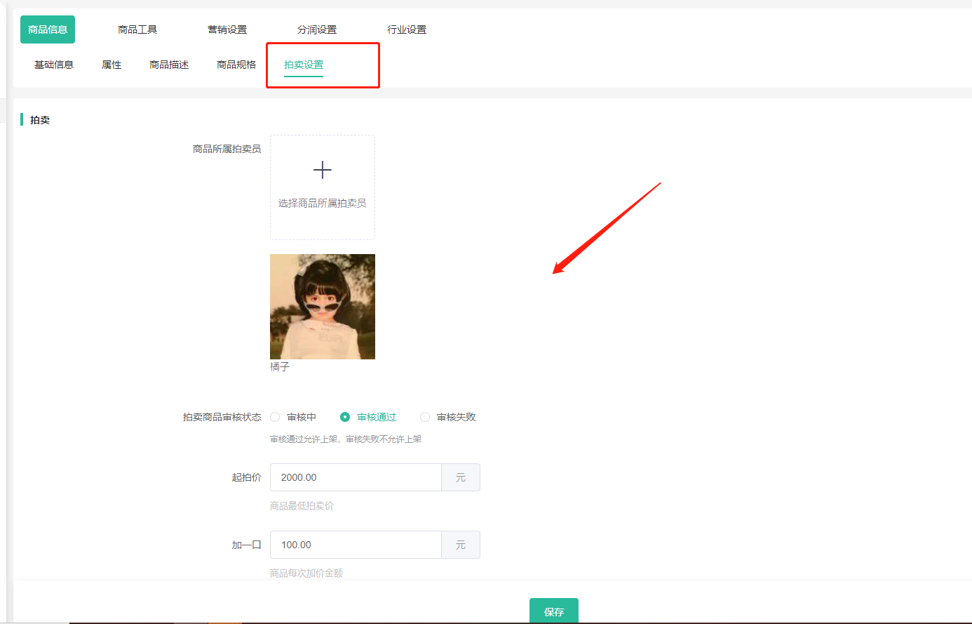 1、商城后台拍品列表——发布商品——拍卖设置
