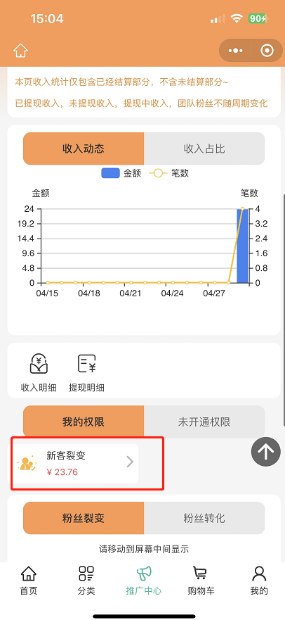 经销商极差奖励、经销商平级奖励结算到收入时都统计结算到新客裂变这个类型,可在收入提现页面提现