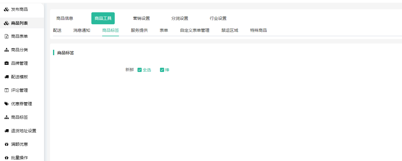 设置商品标签,前端商品列表页支持按照标签筛选商品;后台装修指定场景支持根据标签调用商品