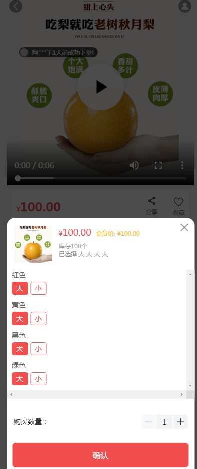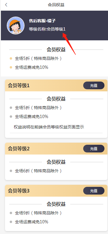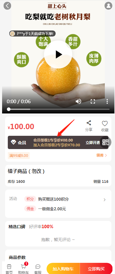 会员等级购买权限:可以指定特定等级的会员才能购买该商品,默认为全部会员都可购买。效果如下