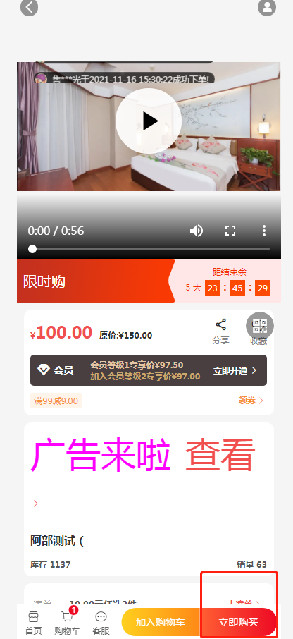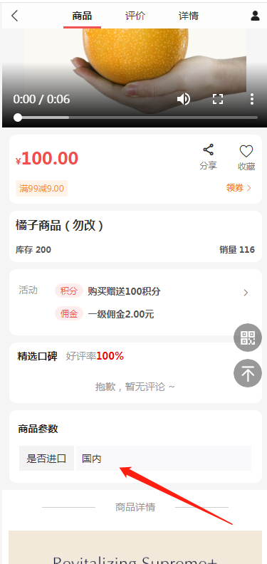 首页视频:如商城首页视频,进入商品详情页,则会显示视频往左滑动才会显示其他图片~