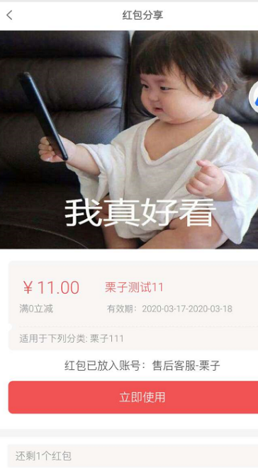 用户购买该商品后,获得赠送优惠券。支持每月1号赠送或者订单完成后立即赠送。购买商品后可分享优惠券,支持选择添加多张优惠券分享,多人领取,一人领取一张。领取成功后可在前端会员中心--营销互动--优惠券查看。