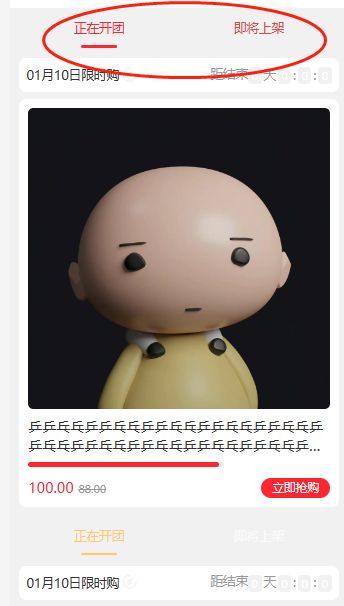 装修DIY插件:限时购组件样式二,商品列表增加即将上架和正在开团标签显示