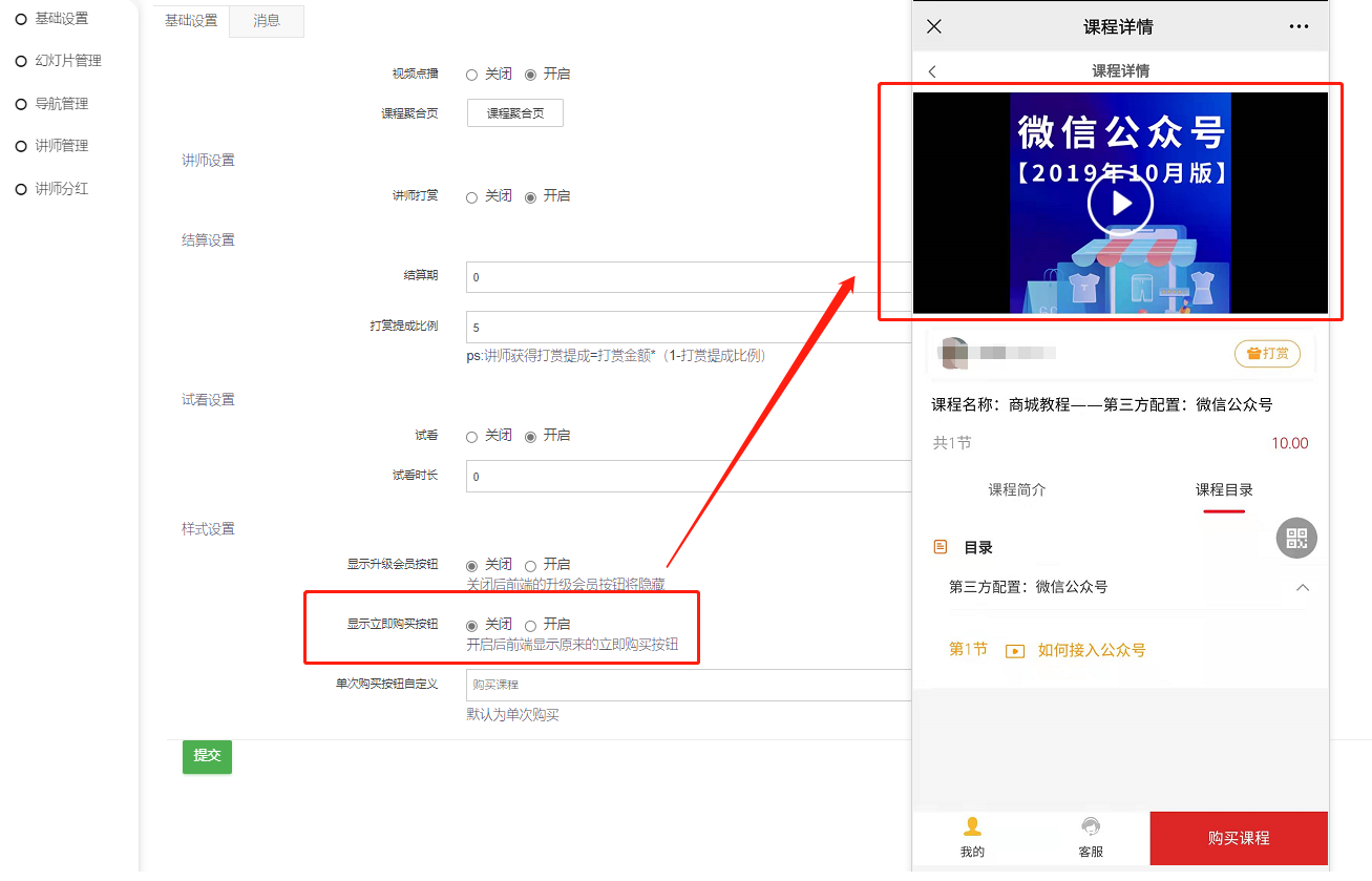 3、开启讲师打赏【基础设置开启打赏、课程商品开启打赏,前端才可以打赏】