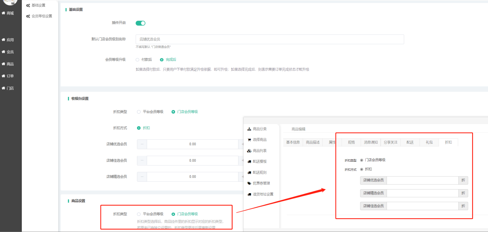 门店会员等级:收银台订单按照门店会员等级享折扣