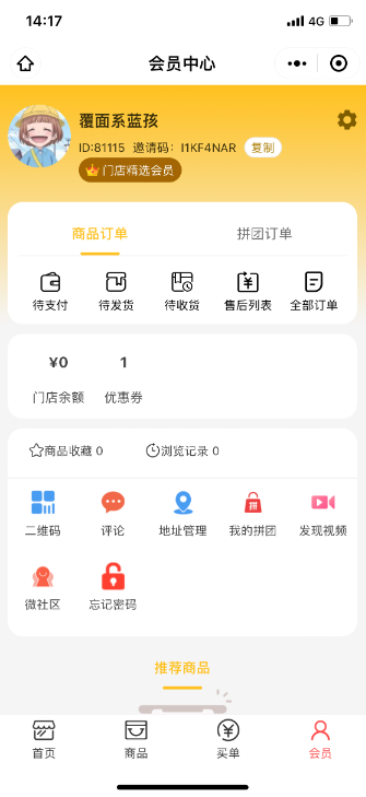 (8)启用搭配‘门店独立模板’插件,以上设置说明可在门店独立模板---门店个人中心--查看会员等级、等级权益页面——特别说明:等级权益页面该功能尚未上线。